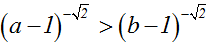 Cho (a-1)-34>(a-1)-45 và b3>b23. Khẳng định nào sau đây là đúng