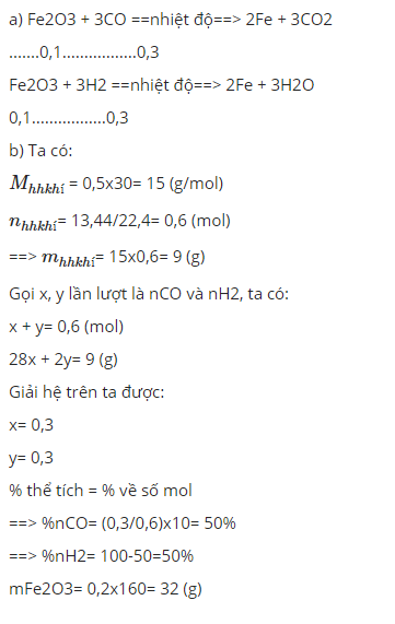 Để khử m g Fe2O3 thành Fe cần 13,44 lít (đktc) hỗn hợp khí CO và H2.
