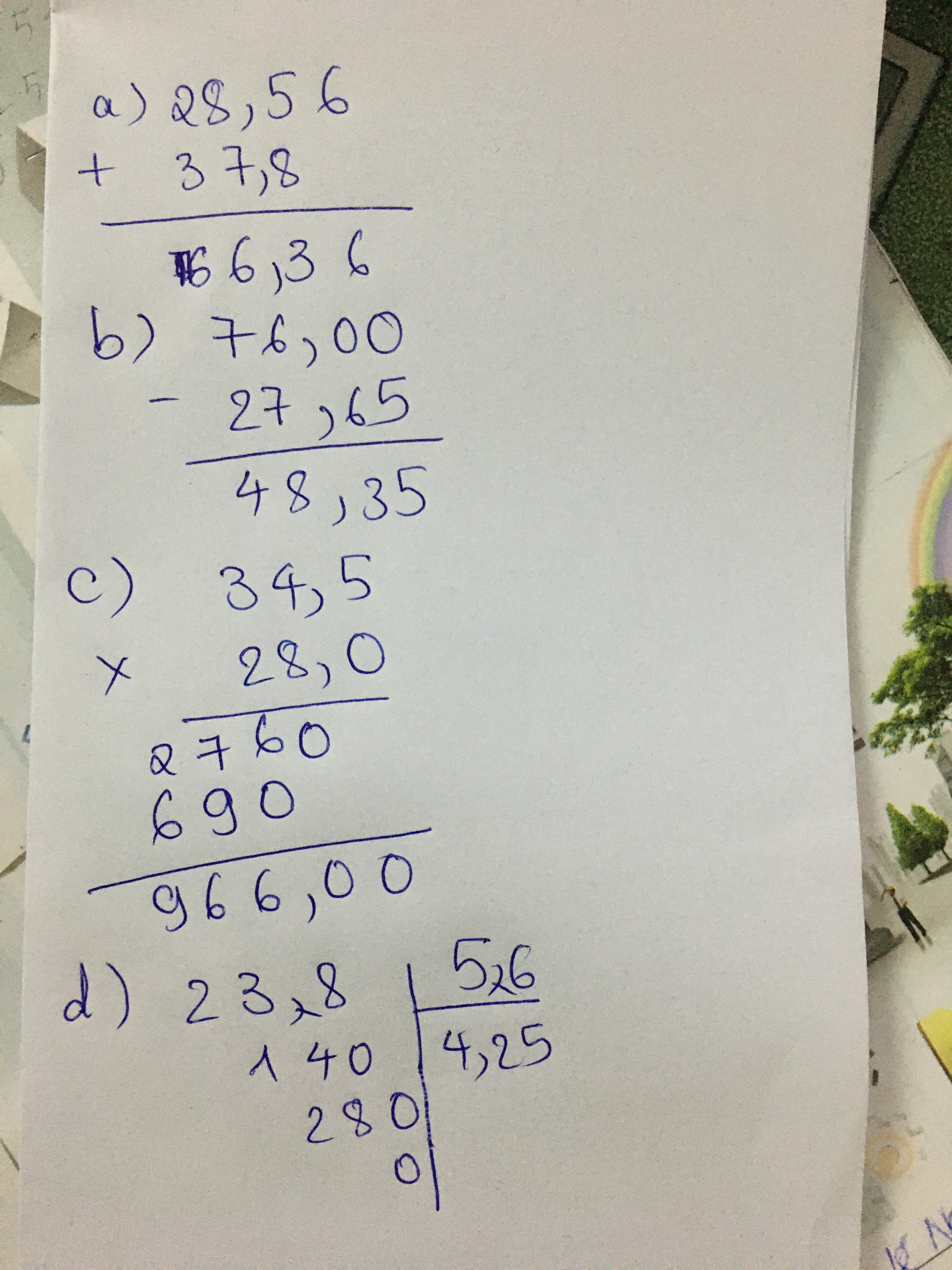 a,28,56+37,8=66,36 b,76-27,65=48,35 c,34,5.28=966 d,23,8:5,6=4,25