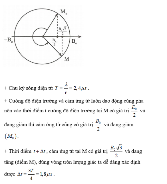 Một sóng điện từ lan truyền trong chân không với bước sóng 720m, độ lớn vecto cảm ứng từ có giá trị cực đại lần lượt là E0 và B0. Trên 1 phương truyền sóng, xét tại một điểm M. Vào thời điểm t, cường độ điện trường tại M có giá trị 0,5 E0 và đang giảm. Vào thời điểm t + delta t cảm ứng từ tại M có giá trị (B0 căn 3)/2 và đang tăng. Biết rằng trong khoảng thời gian delta t vecto cảm ứng từ đổi chiều 1 lần. Giá trị của delta t là: