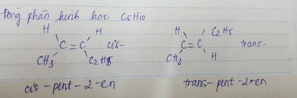 CH3 – CH = CH – CH2 – CH3: pent-2-en có hai đồng phân hình học