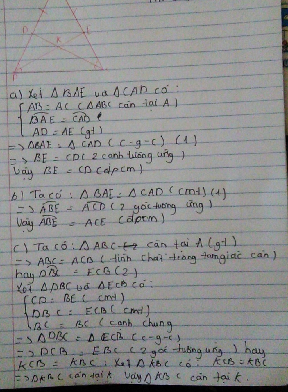 Do đó: `ΔABE=ΔACD` (c.g.c)