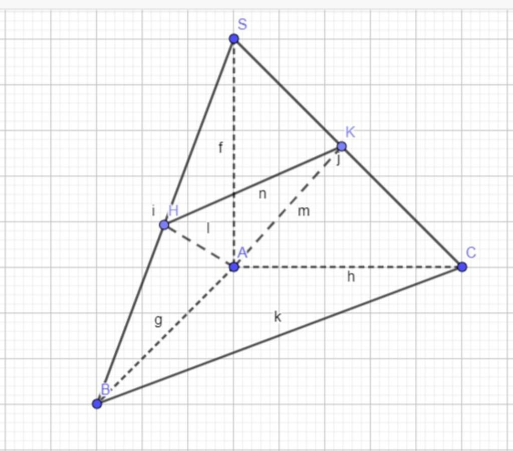 c) Kẻ đường cao AK trong tam giác SAC. Chứng minh: SC vuông góc (AHK)