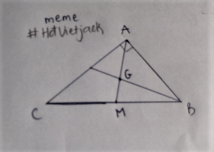 `AM` là trung tuyến ( do `M` là trung điểm của ` BC`)
