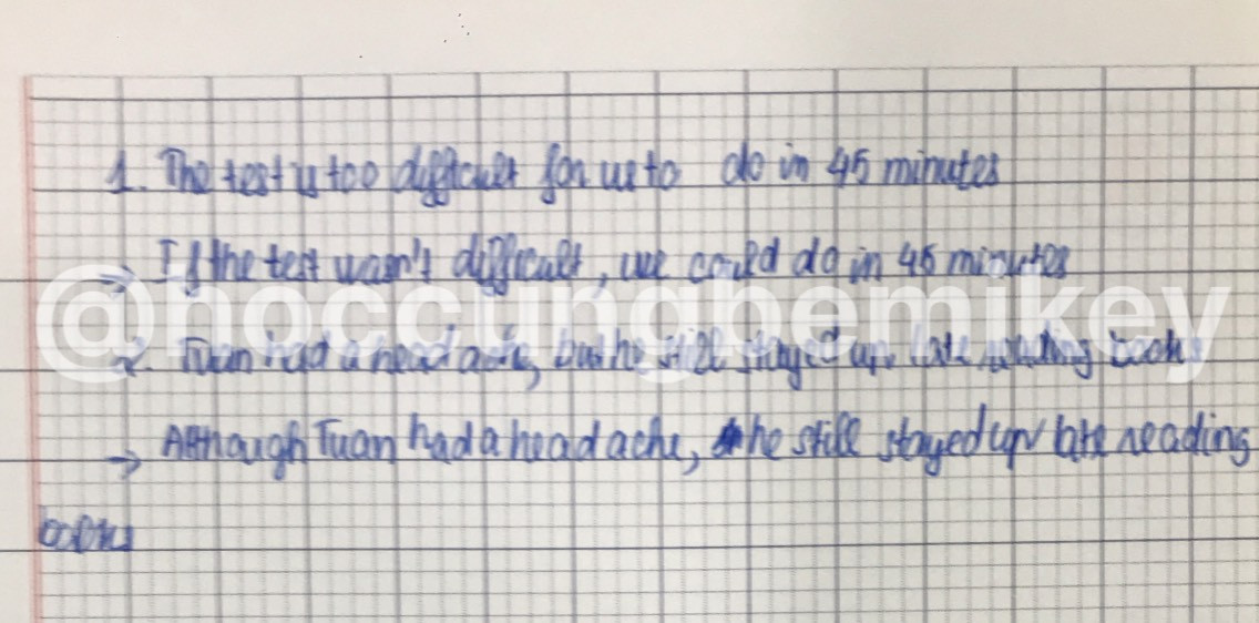 - Câu 2: cấu trúc although + clause, vế sau giữ nguyên _ KHÔNG thêm "but")