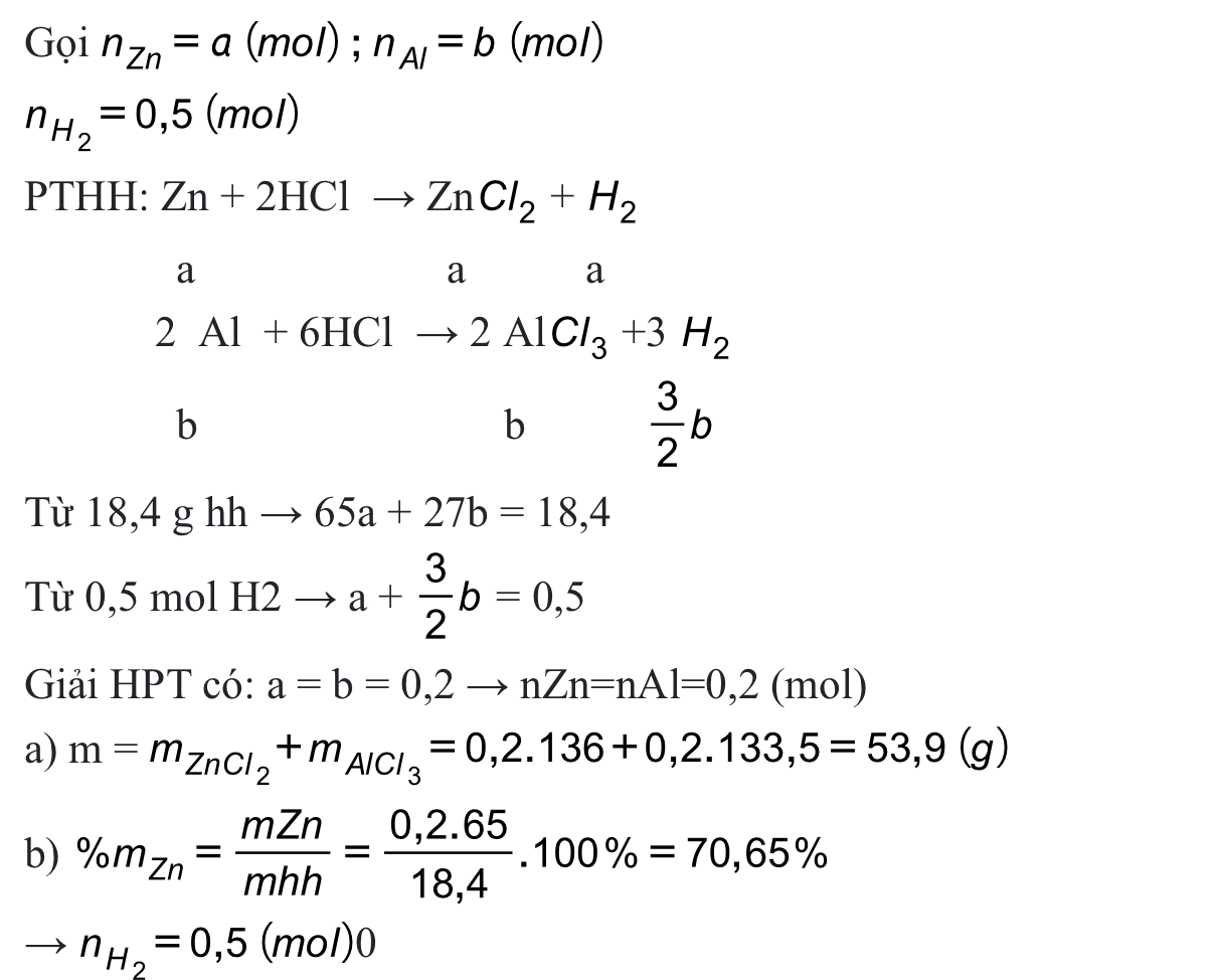 Giải HPT có: a = b = 0,2 → nZn=nAl=0,2 (mol)