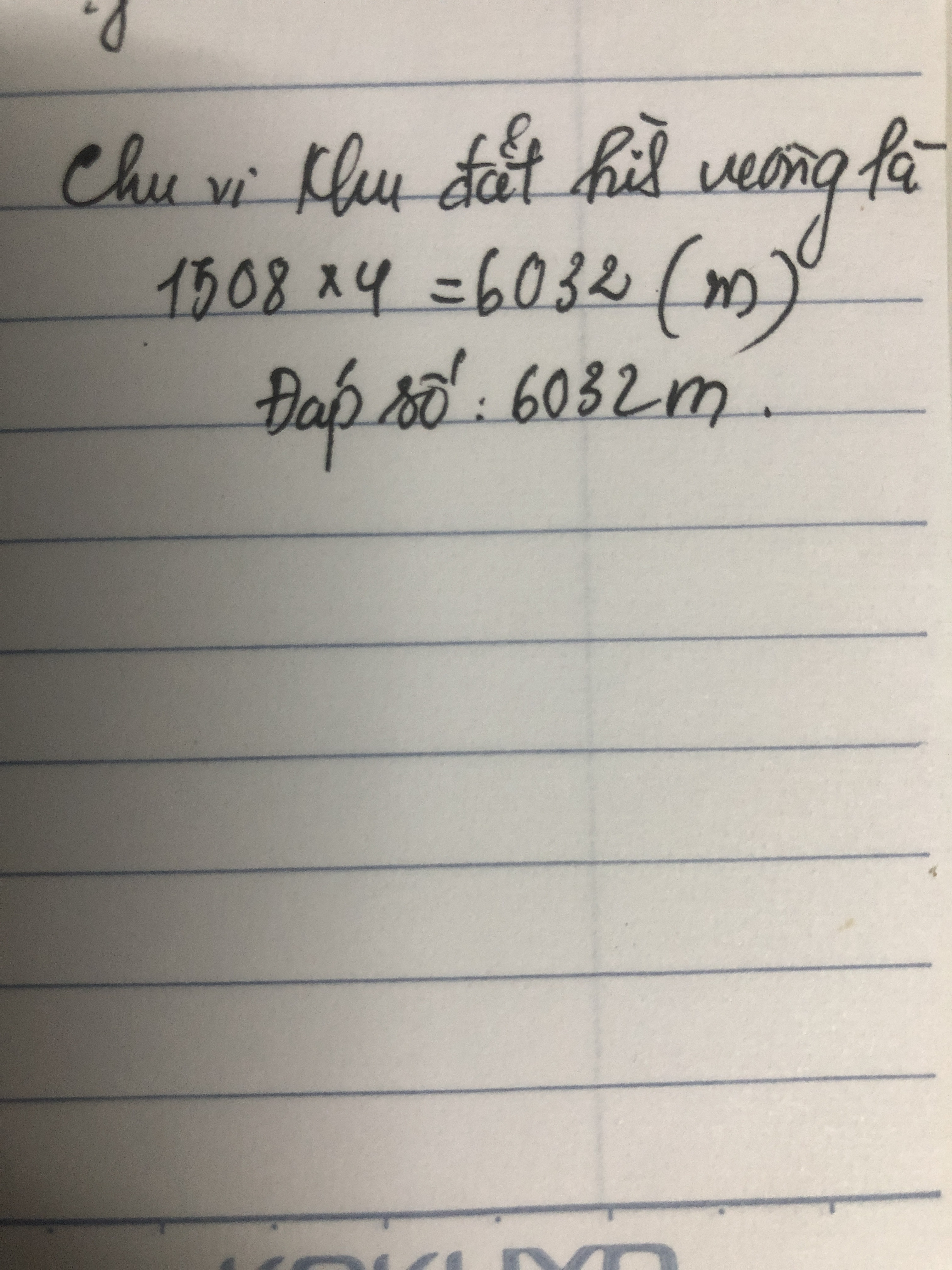 Tính chứ vi khu đất hình vuông có cạnh là 1508m