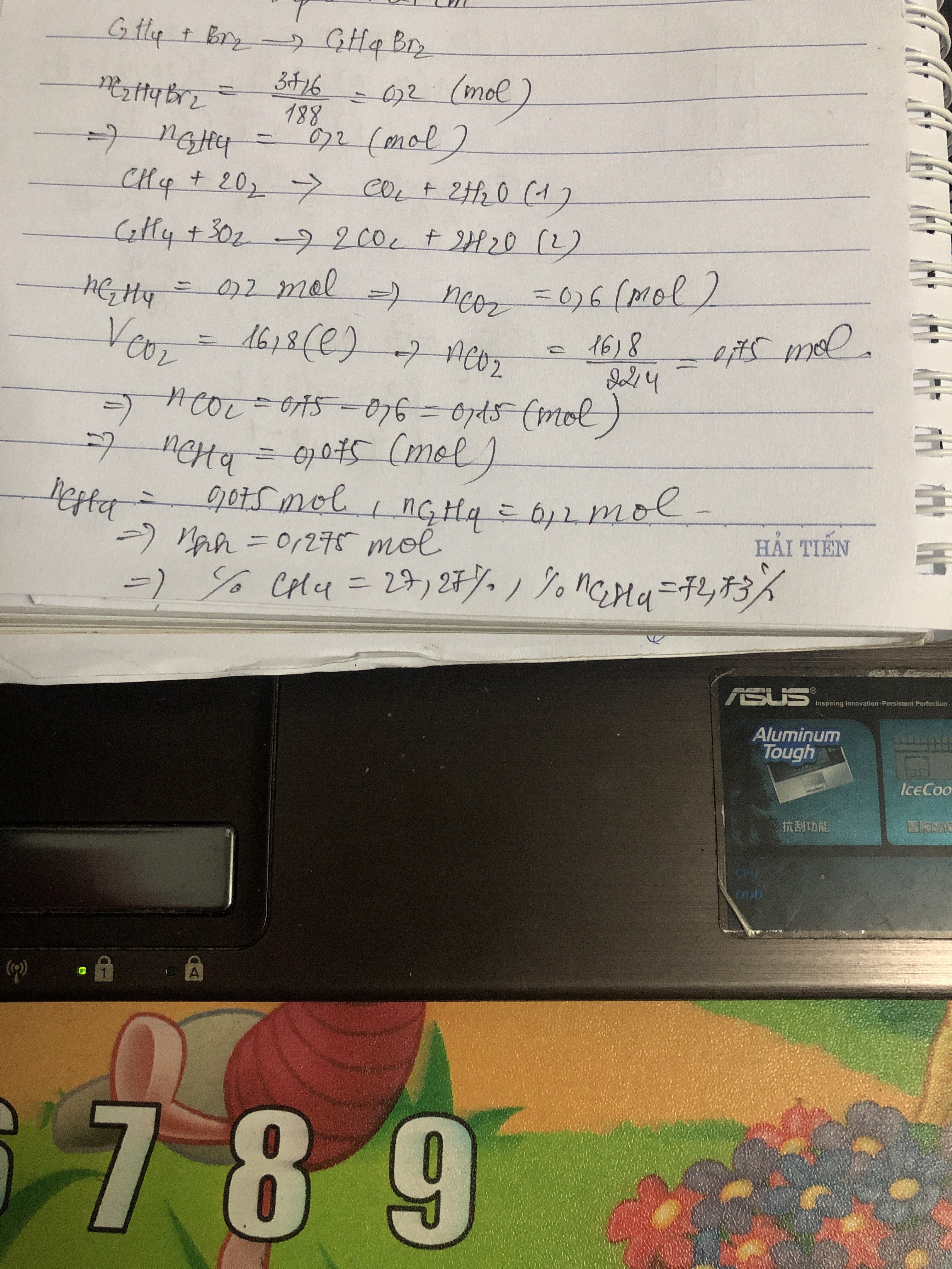 Ta có: nCH4 = 0.075 (mol), nC2H4 = 0.2 (mol)