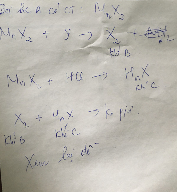 Hợp chất A tạo bởi kim loại M (hoá trị 2 không đổi trong các phản ứng) và X. Chia 33,95 gam A làm hai phần. Phần 1 cho tác dụng với khí Y vừa đủ thu được khí B, phần 2 cho tác dụng với dung dịch HCl dư thu được khí C. Trộn khí B và C được kết tủa màu vàng nặng 9,6 gam và còn lại chất khí B, cho lượng khí B dư này phản ứng với nước clo vừa đủ để tạo thành dung dịch D. Cho D tác dụng với dung dịch AgNO3 dư, tạo thành 29,95 gam kết tủa màu trắng. Xác định công thức phân tử của A. Biết các phản ứng xảy ra hoàn toàn