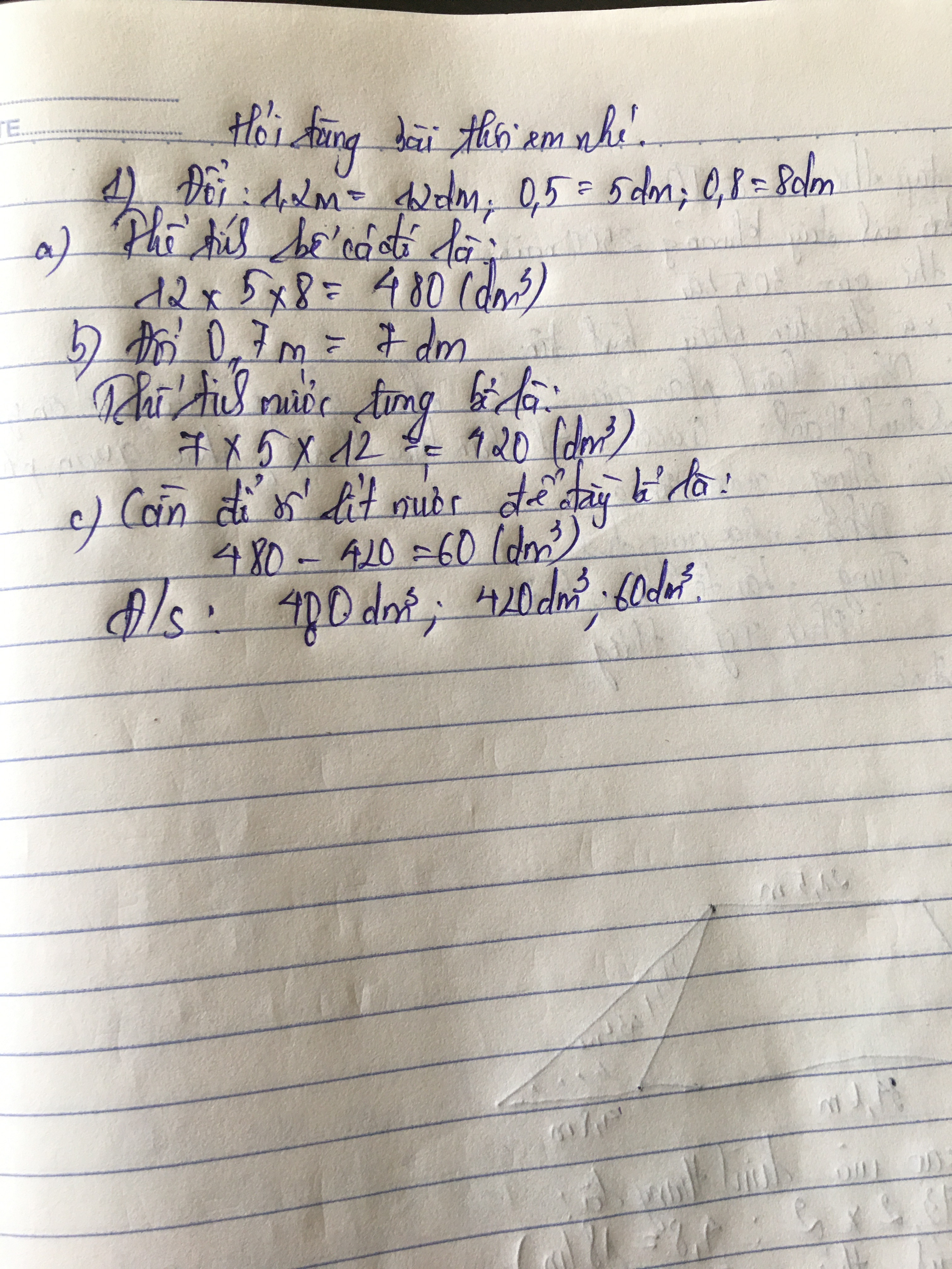 1.một bể cá dạng hình hộp chữ nhật.có chiều dài 1,2m,chiều rộng 0,5m và chiều cao 0,8m