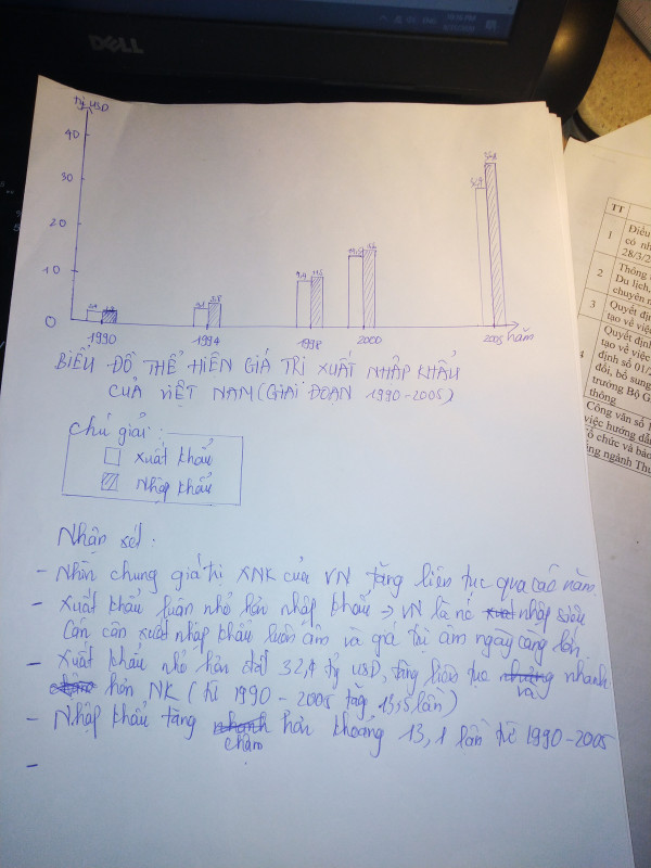 a. Vẽ biểu đồ cột thể hiện giá trị xuất và nhập khẩu của Việt Nam qua các năm.