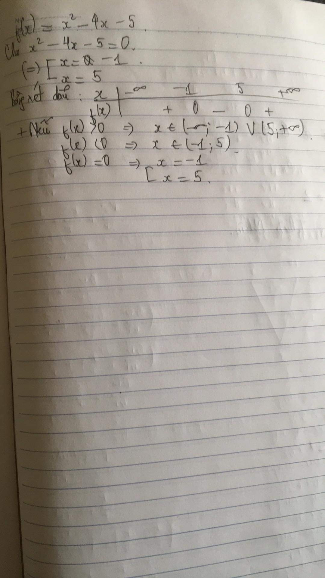 Xét dấu biểu thứca, F(x)=x2 - 4x -5