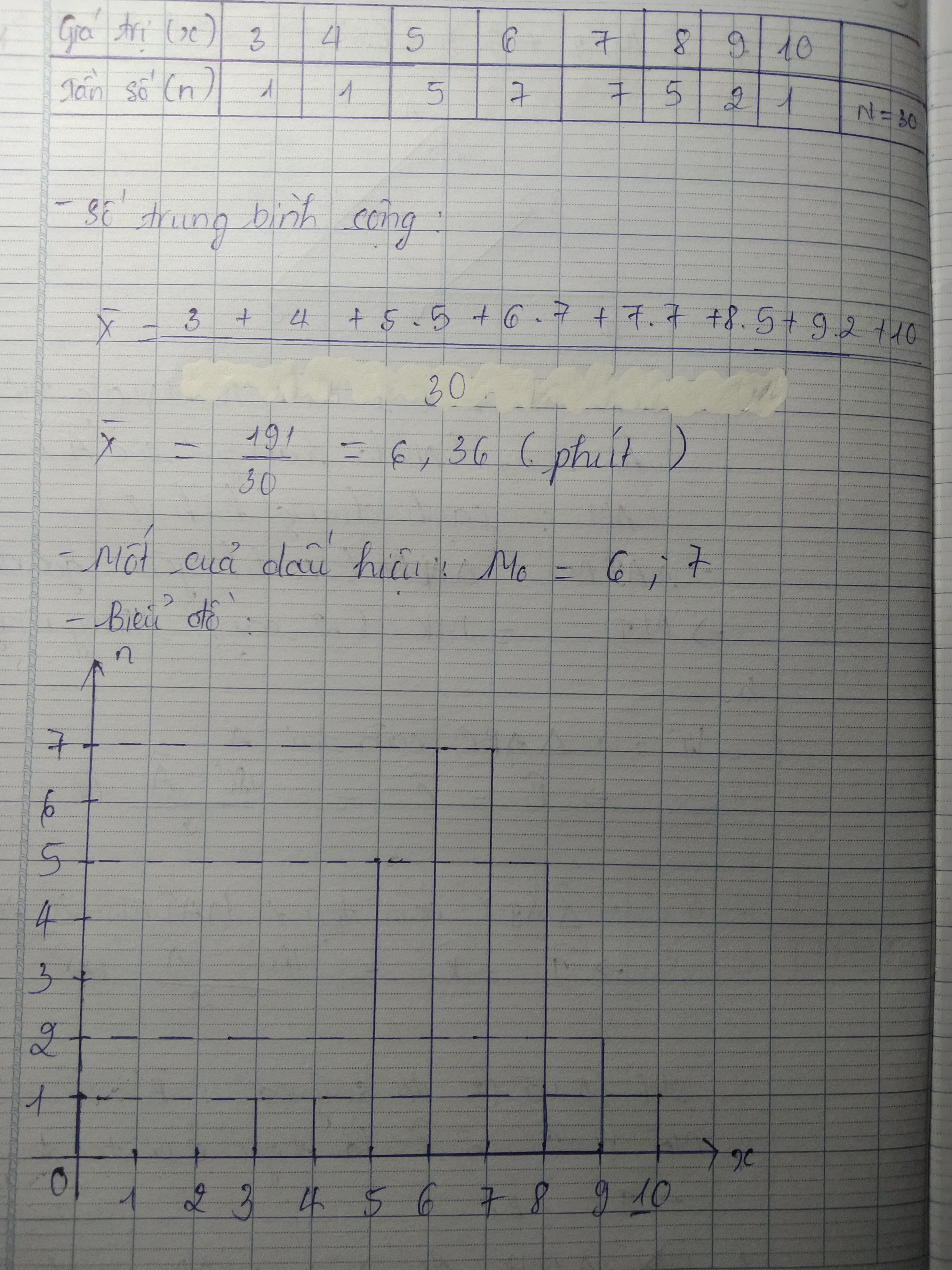 Điểm kiểm tra học kì 1 môn toán của lớp 7A được ghi trong bảng sau: