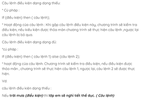 Hãy viết cú pháp câu lệnh điều kiện dạng thiếu và câu lệnh dạng đầy đủ, trong mỗi trường hợp em hãy cho ví dụ cụ thể