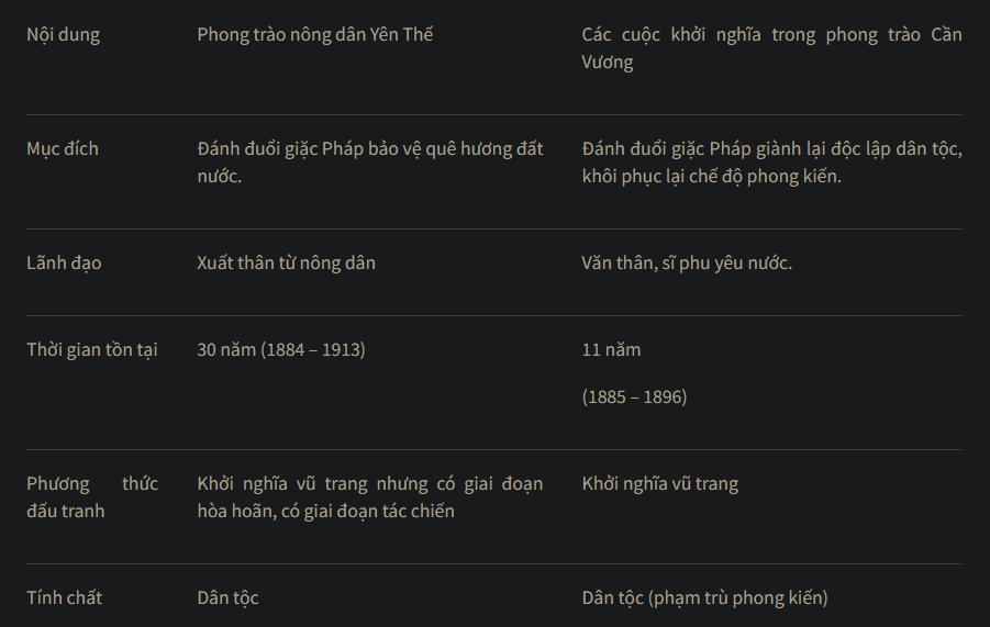 Phong trào yêu nước chống Pháp theo ý thức hệ phong kiến và thể hiện tình thần dân tộc sâu sắc. |