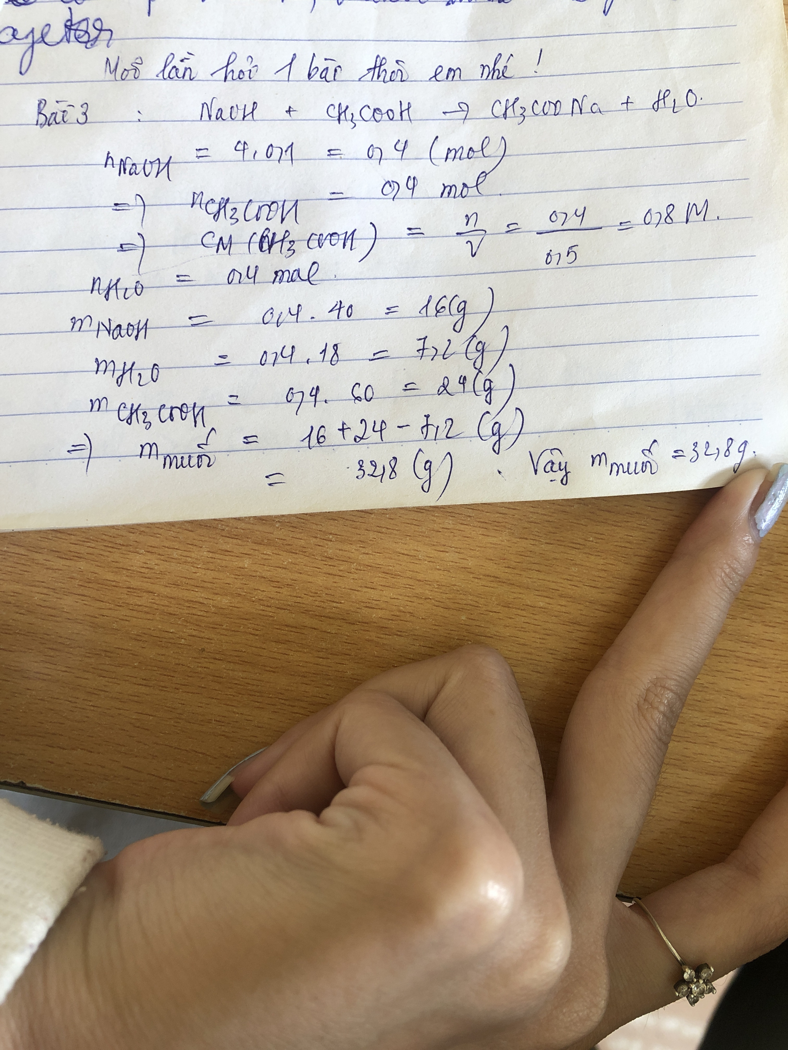 Bài 3: để trung hòa vừa đủ 100ml dung dịch NAOH 4M cần dùng 500ml dung dịch CH3COOH