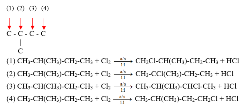 Cho iso pentan td với cl2 (askt) theo tỉ lệ số mol (1:1) viết pthh tạo các sản phẩm monoclo tương ứng
