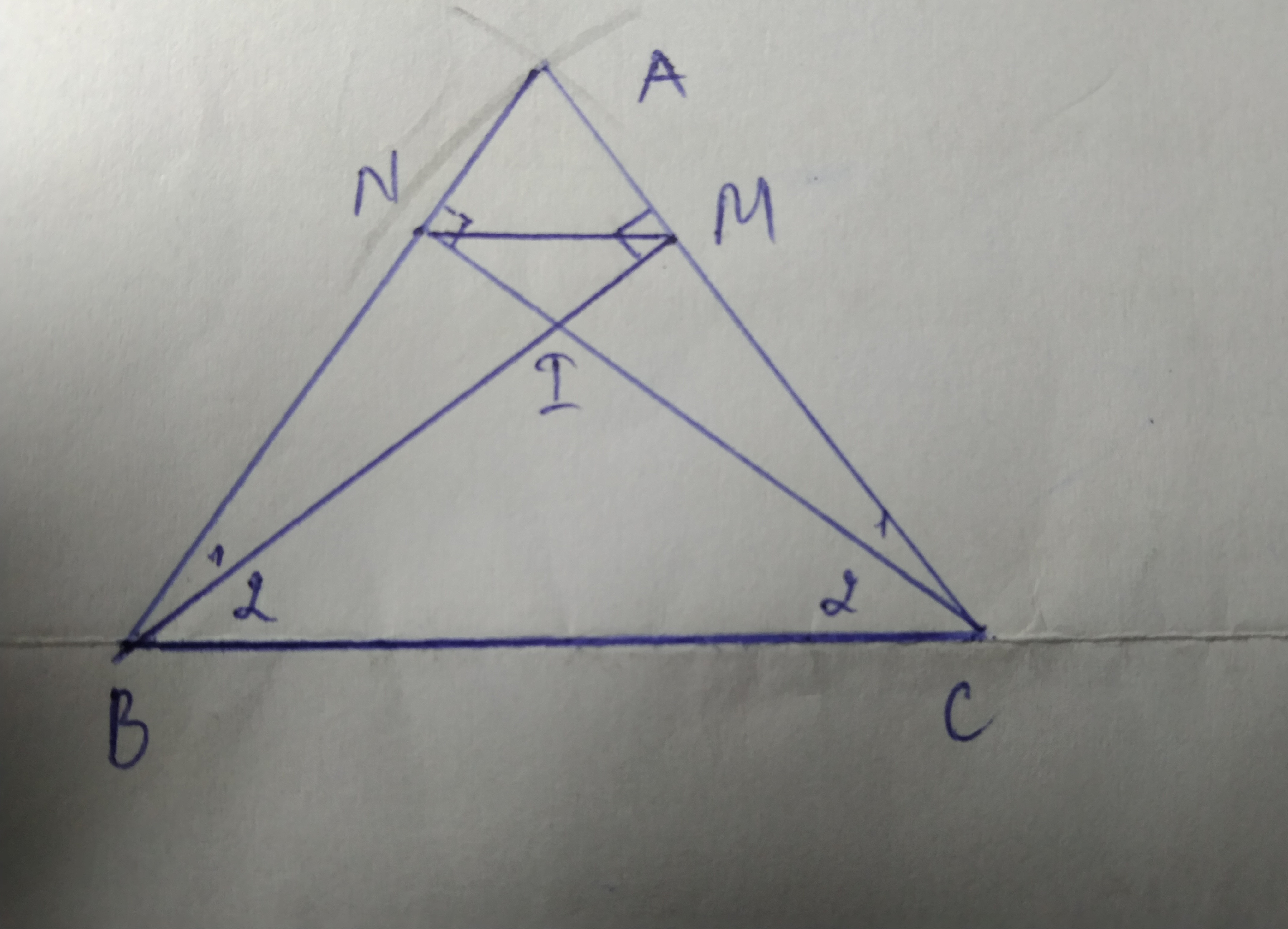 Cho tam giác ABC cân tại A, có kẻ BMAC tại M, kẻ CNAB tại N