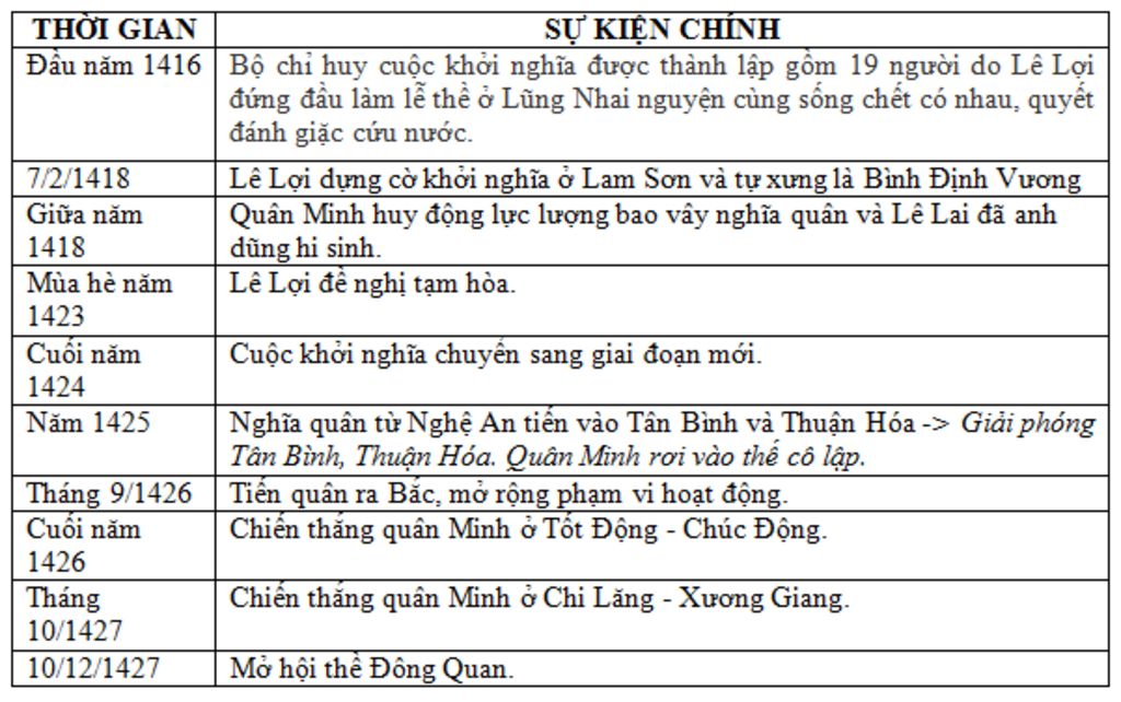 Trình bày những mốc chính trong quá trình hình thành và phát triển của cuộc khởi nghĩa Lam Sơn (1771-1427)?