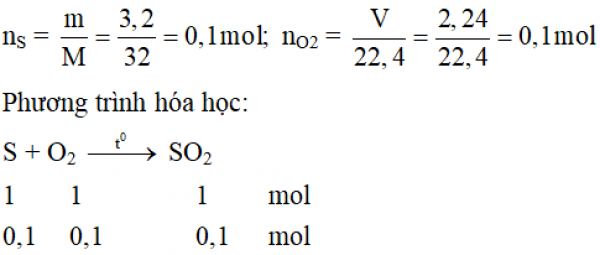 Đốt cháy hoàn toàn 3,2 gam lưu huỳnh trong 2,24 lít khí O2. Sau phản ứng khối lượng SO2 thu được là A. 6,4 gam. B. 3,2 gam. C. 8,0 gam. D. 4 gam.