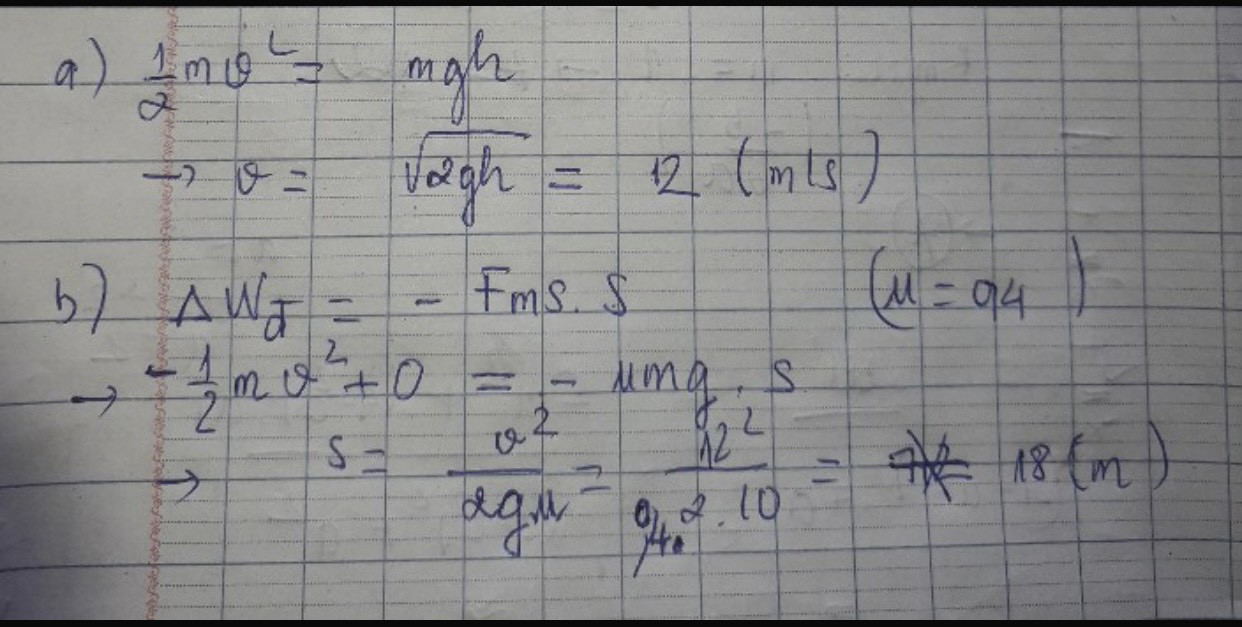 b> Sau đó vật tiếp tục trượt trên mặt phẳng ngang. Biết hệ số ma sát trượt giữa vật và mặt phẳng ngang là 0,4. Tính quãng đường vật trượt trên mặt phẳng ngang cho đến khi dừng lại