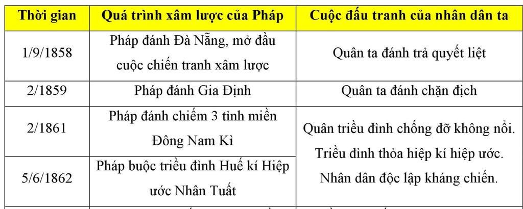 Quá trình chiến đấu chống thực dân Pháp xâm lược của quân dân ta từ năm 1858-1862.