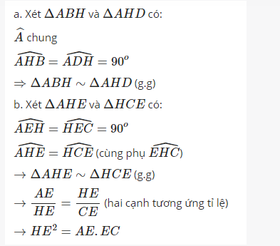 b,Chứng minh AD× AB = AE x AC = AH^2