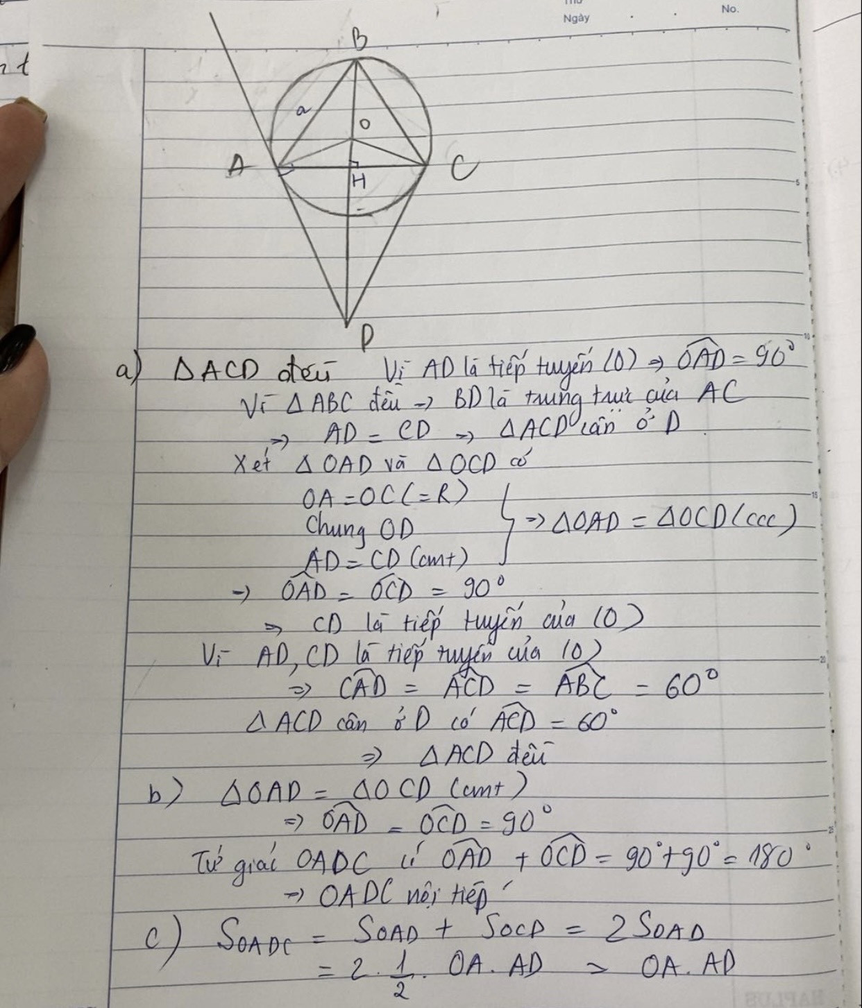 c) Tính diện tích của tứ giác AOCD theo a