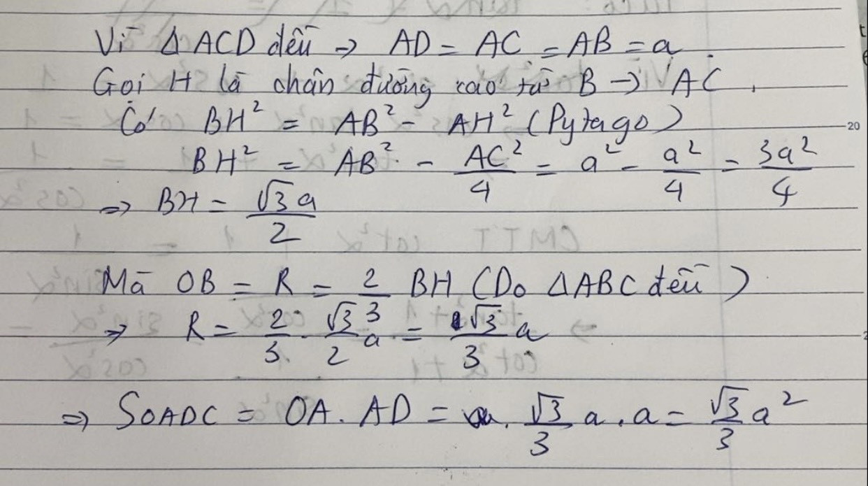Cho ∆đều ABC có cạnh bằng a (a>0) nội tiếp đường tròn O. Đường thẳng BD cắt tiếp tuyến tại A với đường tròn O ở D.