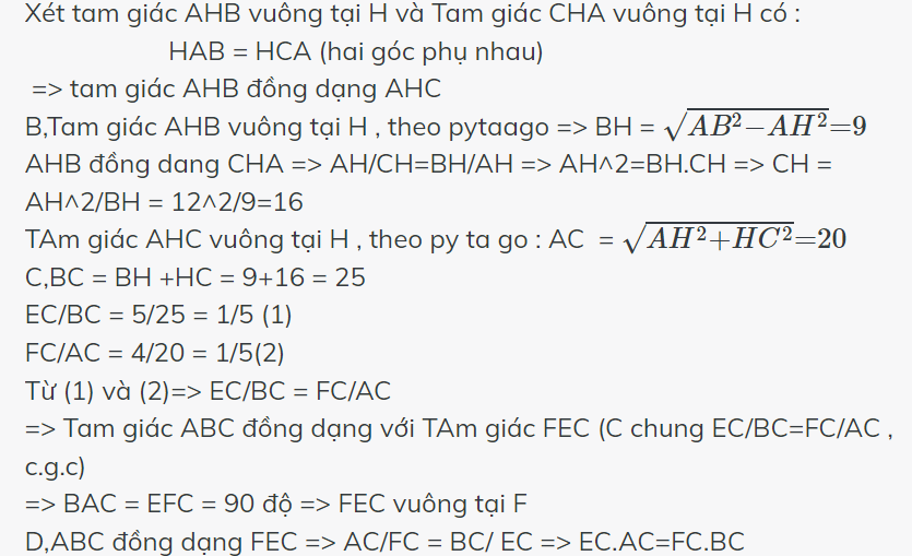 a) Chứng minh tam giác ABH CAH đồng dạng