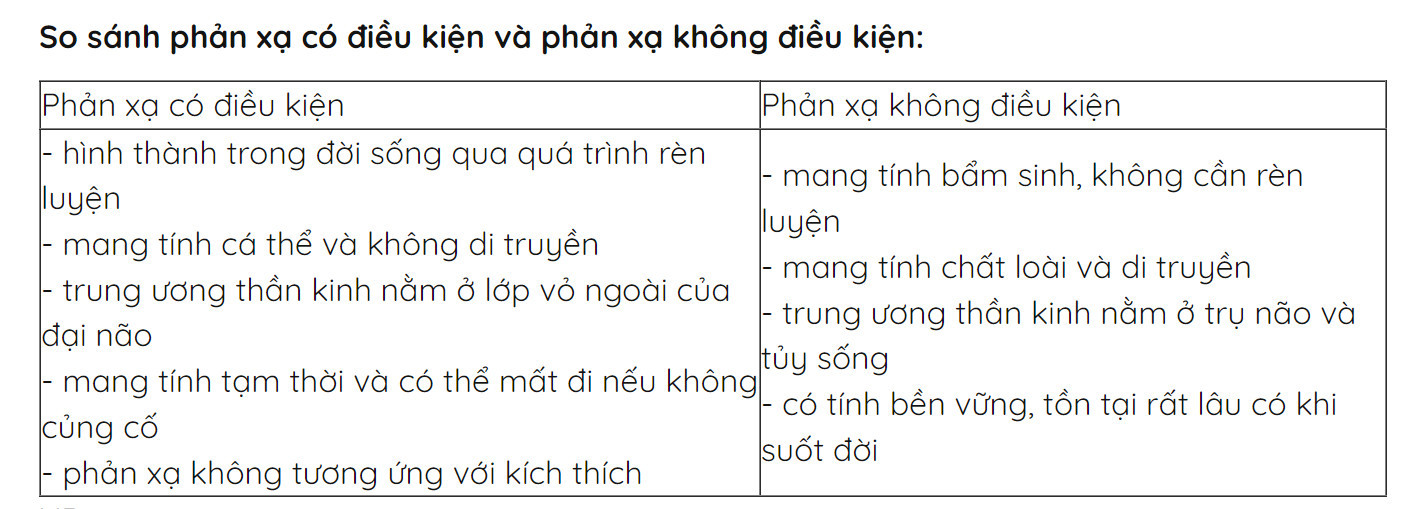 Câu 3: So sánh phản xạ có điều kiện và phản xạ không điều kiện ?