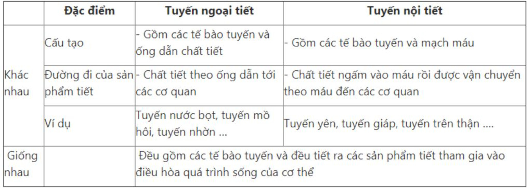 Phân biệt tuyến ngoại tiết và tuyến nội tiết: