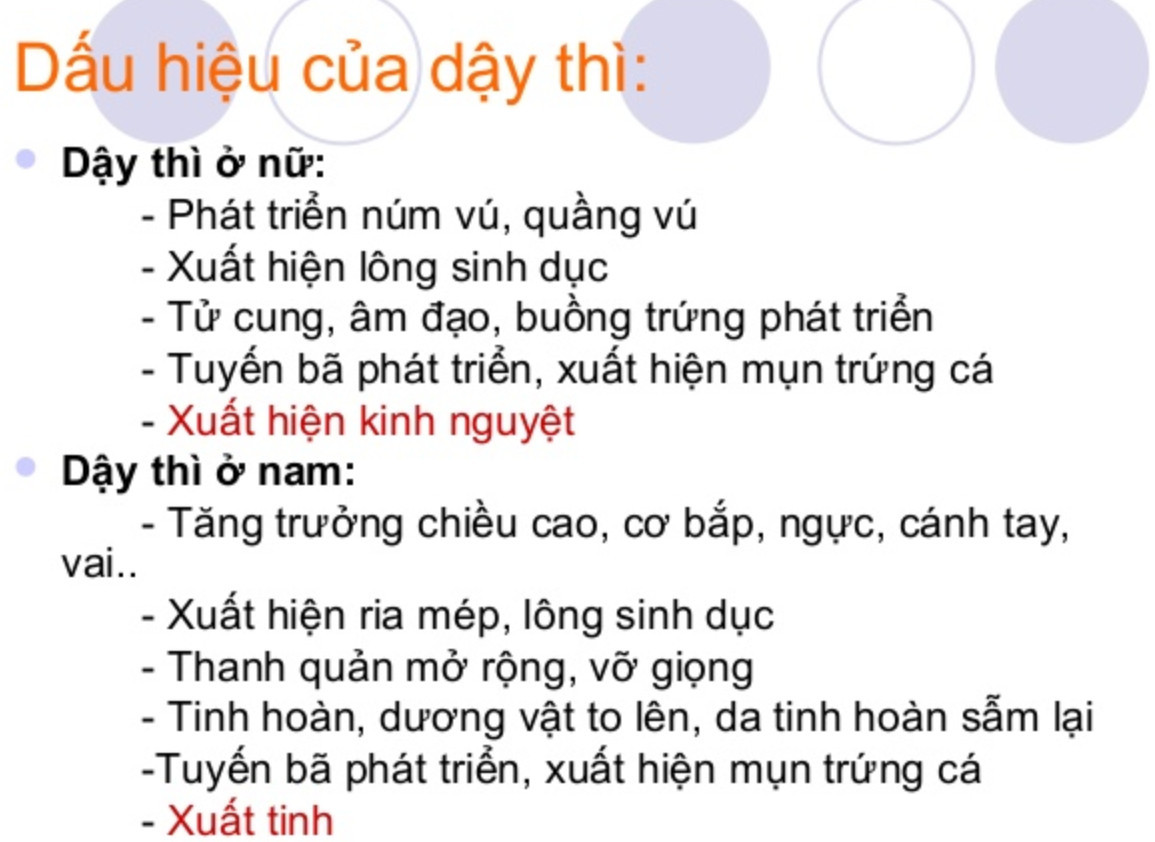 Câu 10: Dấu hiệu đánh dấu sự dậy thì chính thức ở nam và nữ ?