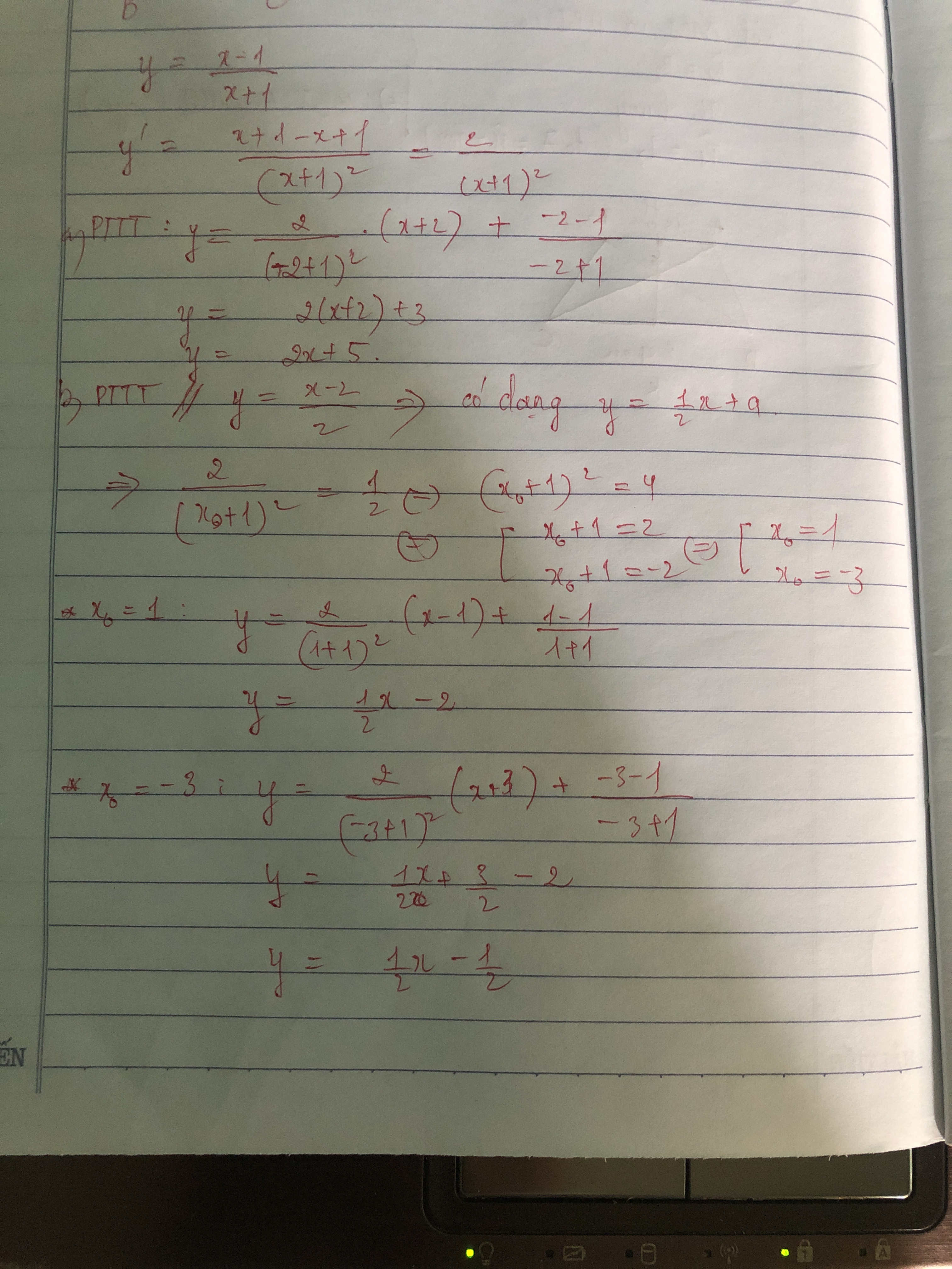 b. Viết PTTT của đồ thị, biết tiếp tuyến song song với đt y= x-2/2