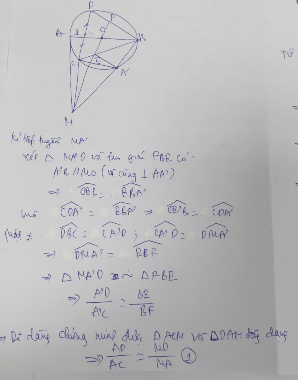 b ) Kẻ AH vuông góc với MO tại H, AH cắt CD tại K, Chứng minh MA2 = MK.MI