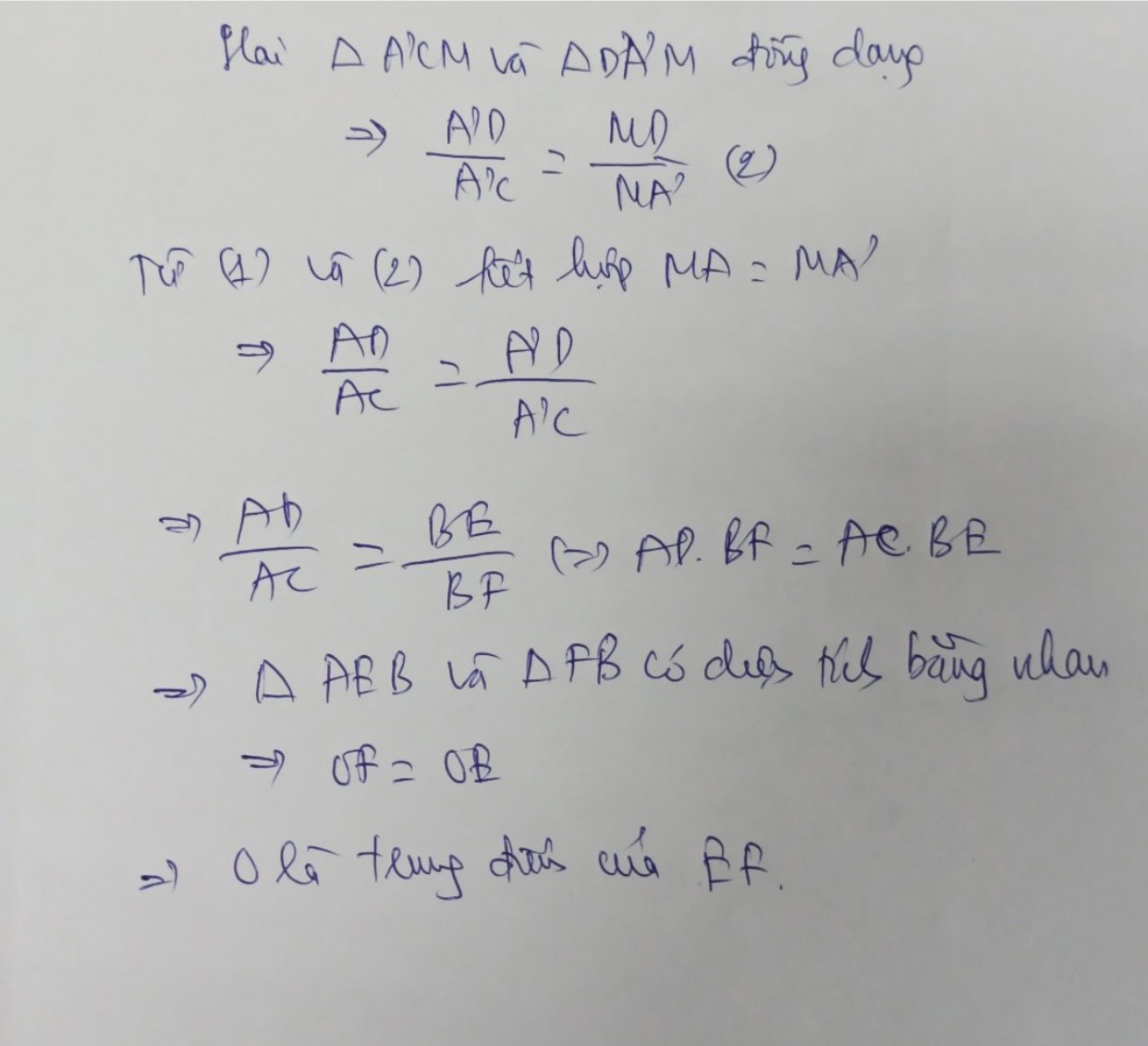 c) Gọi E và F lần lượt là giao điểm của OM với BC và BD. Chứng minh O là trung điểm của EF