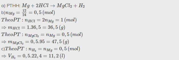 PTHH: $Mg+2HCl →MgCl_2+H_2$