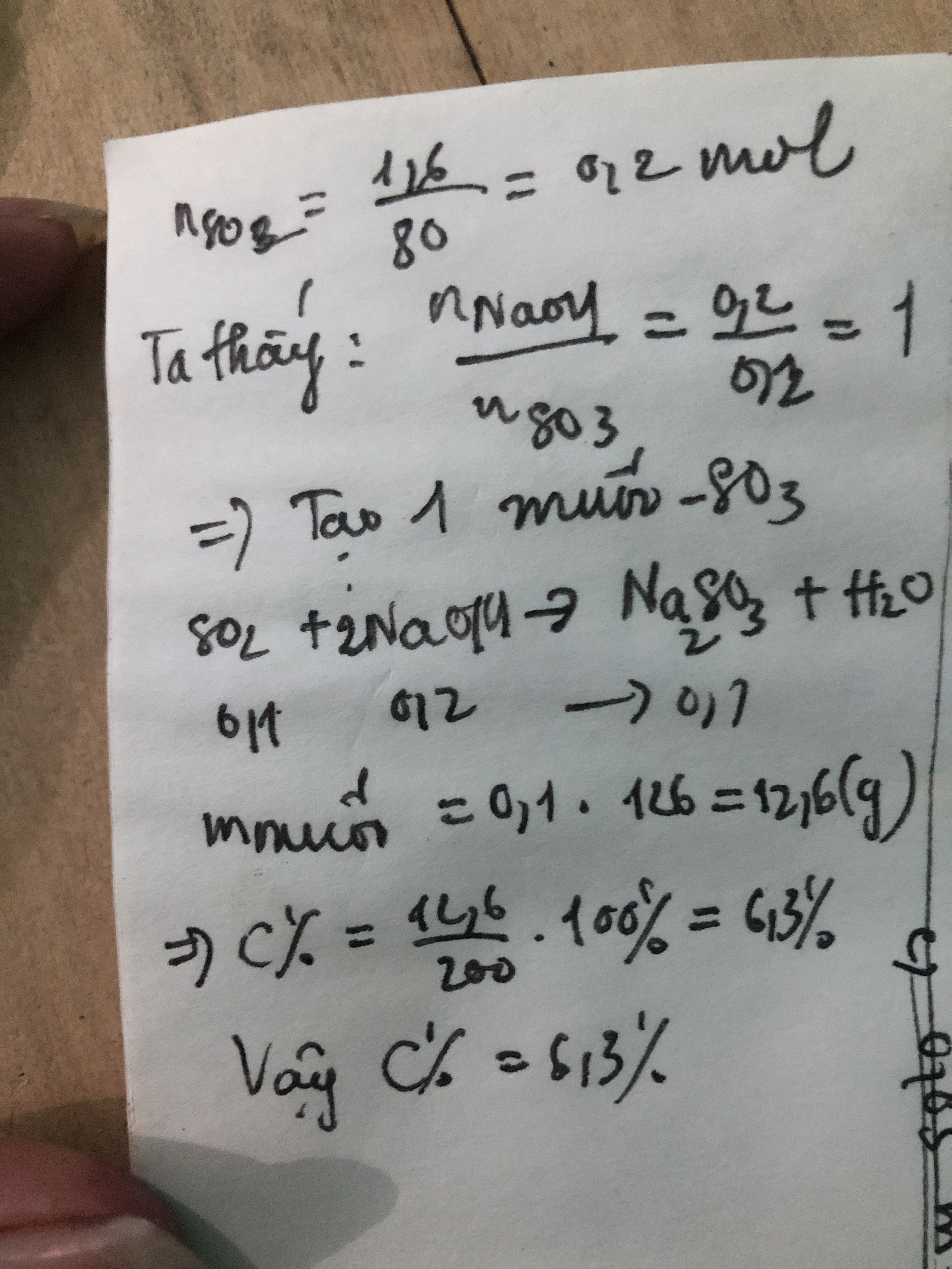 `C%_(Na_2SO_3` `=` `(m_{Na_2SO_3})/(m_{dd(spư)}).100%` `=` `(2,84)/(200).100%` `=` `1,42%`