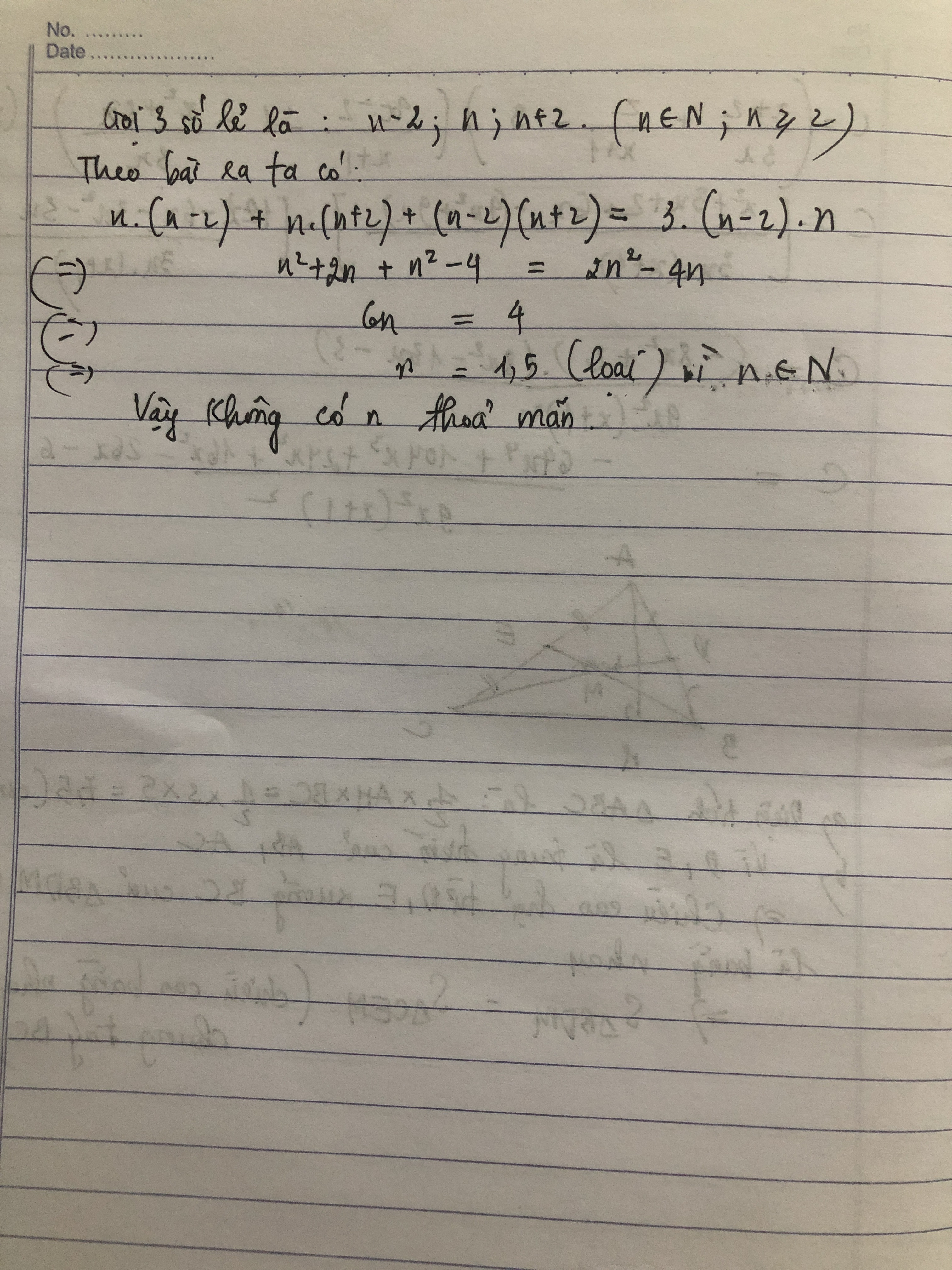 Tìm 3 số tự nhiên lẻ liên tiếp biết nếu cộng 3 tích của 2 trong 3 số ấy ta được 3 lần tích của 2 số đầu
