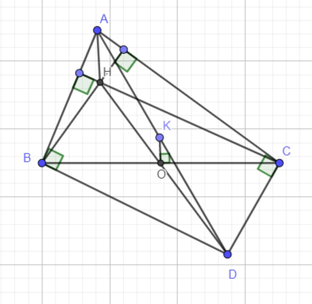 Cho tam giác ABC có trực tâm H, kẽ Bx vuông góc với AB, Cy vuông góc với AC. Gọi D là giao điểm của Bx và Cy. a) Chứng minh: Tứ giác BHCD là hình bình hành. b) Gọi O là trung điểm của BC. Chứng minh: 3 điểm H, O, D thẳng hàng. c) Đường thẳng vuông góc với BC tại O cắt AD tại K. Chứng minh: AH=2.OK