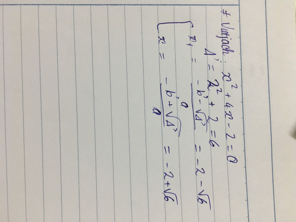 Cho tớ hỏi với : 1x^2+4x-2=0 thì tính thế nòa nhỉ?? Tự nhiên tớ quên. Cíu tớ vớiiiiii