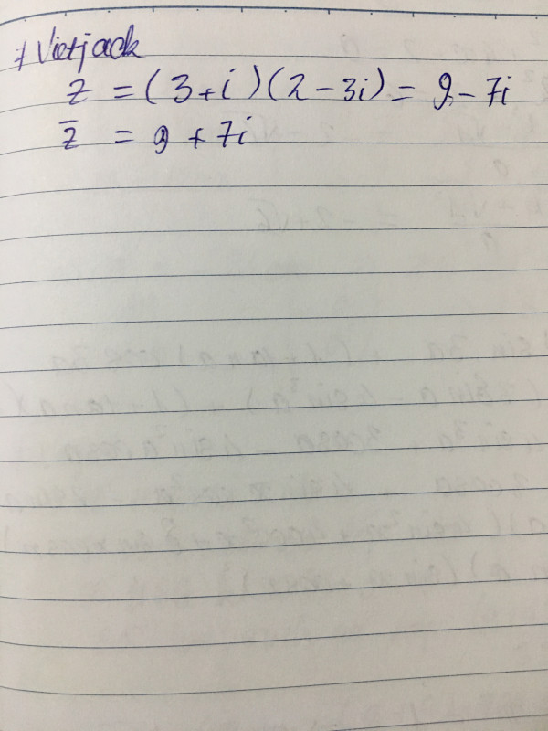 Số phức liên hợp của số phức z=(3+i) (2-3i)