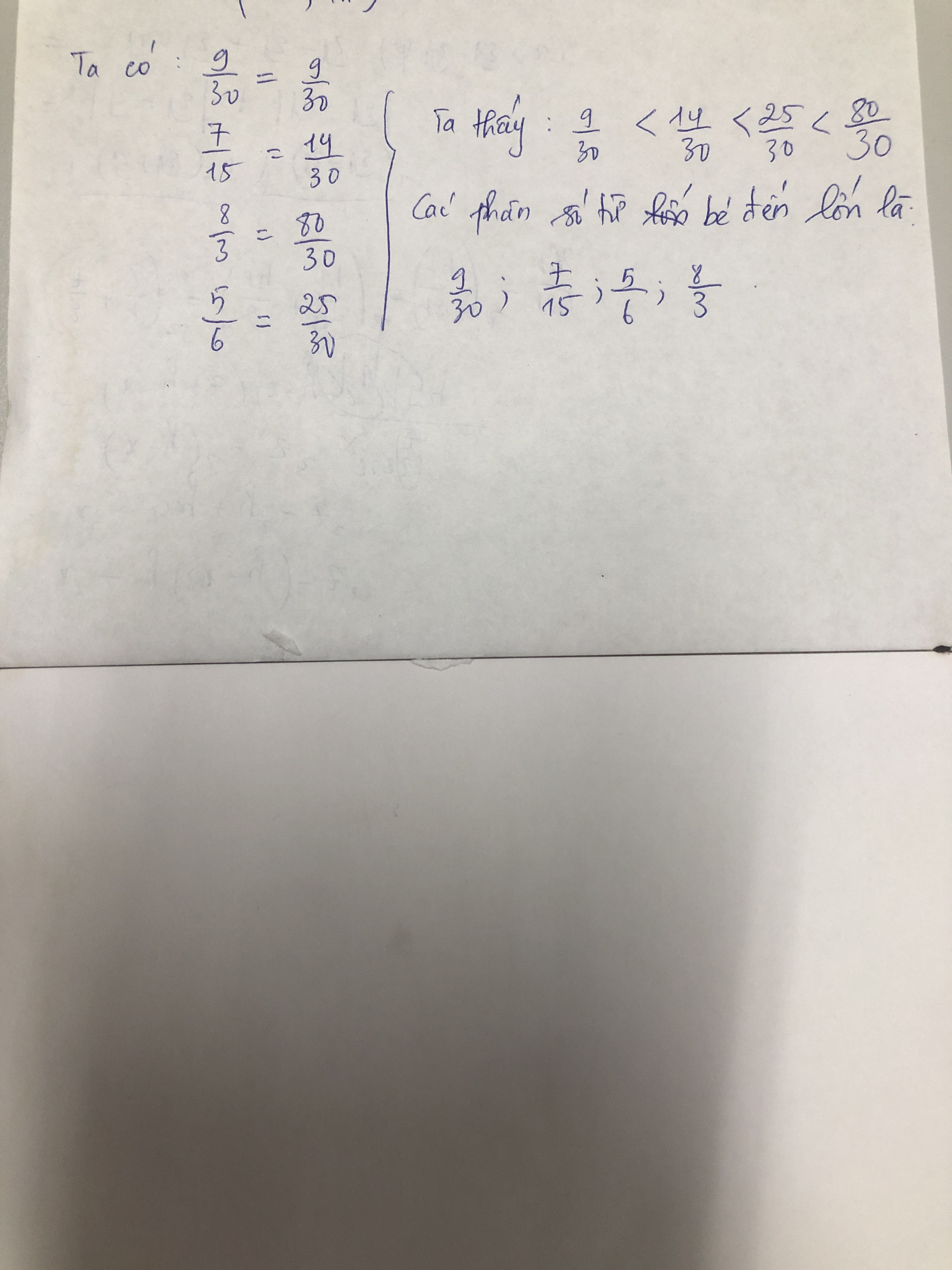 Nên: 9/30 < 7/15 < 5/6 < 8/3