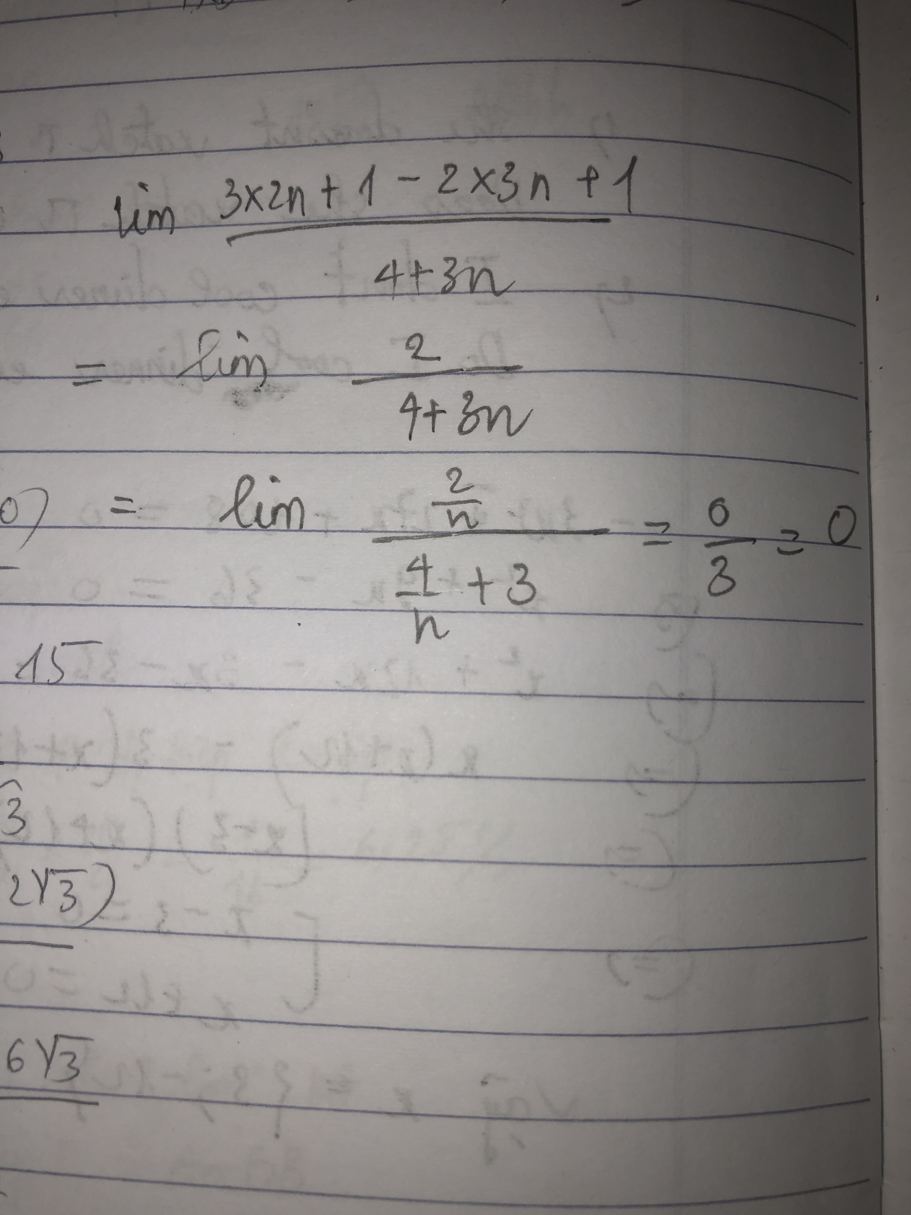 tìm giới hạn lim 3*2n+1-2*3n+1/4+3n