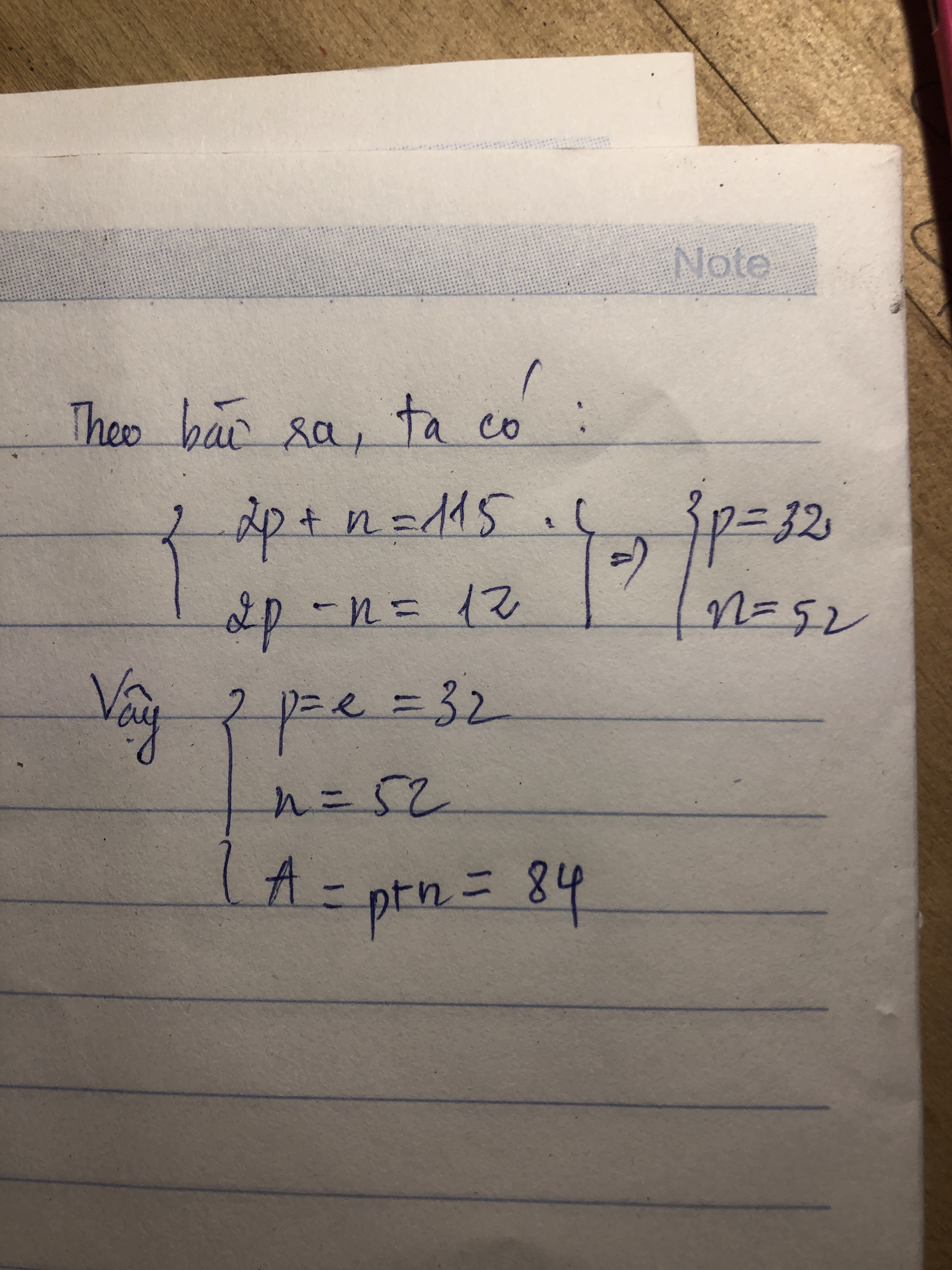 Tổng số hạt(p,n,e) trong nguyên tử của nguyên tố X là 115.Trong số đó hạt mang điện nhiều hơn số hạt không mang điện laf12 hạt.Xác định số hạt p,n,e và nguyên tử khối của nguyên tố đó