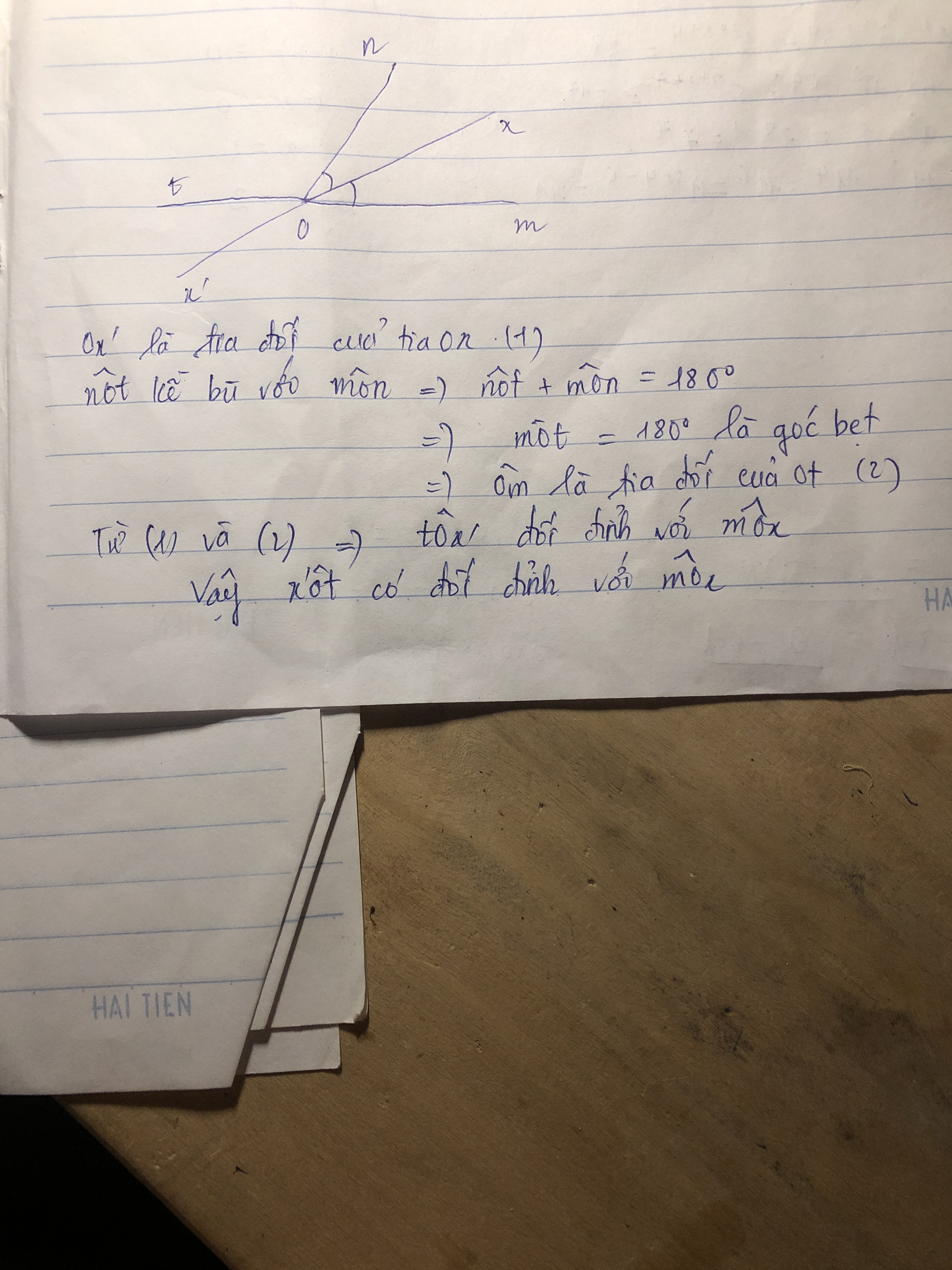 Từ đó suy ra: ^xOm và ^x′Ot là hai góc đối đỉnh.