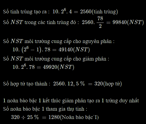 `-` Số tinh trùng tạo ra : `10 . 2^6 . 4 = 2560(`tinh trùng`)`