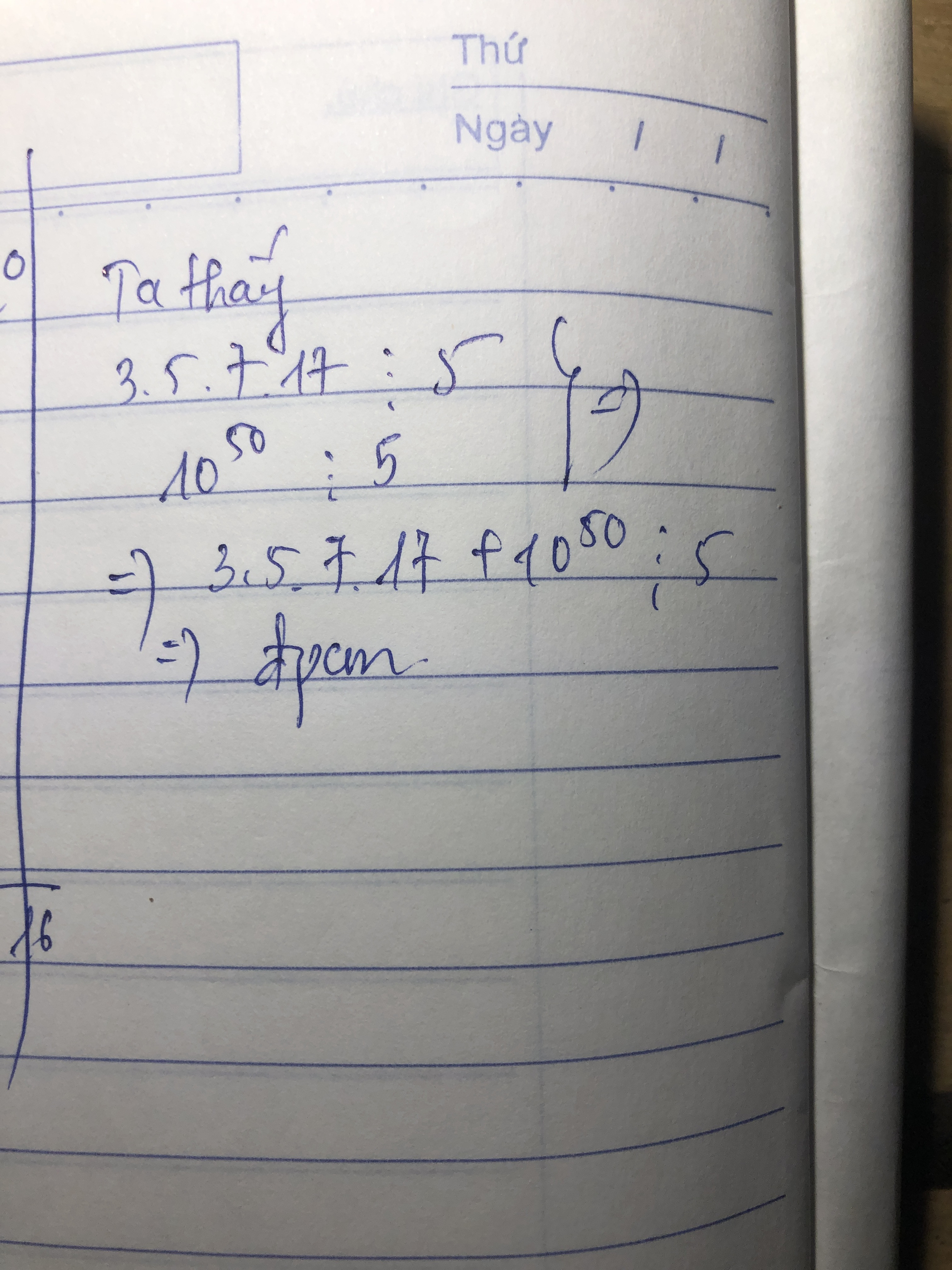 => N = 3.5.7.17 + 10⁵⁰ chia hết cho 5.