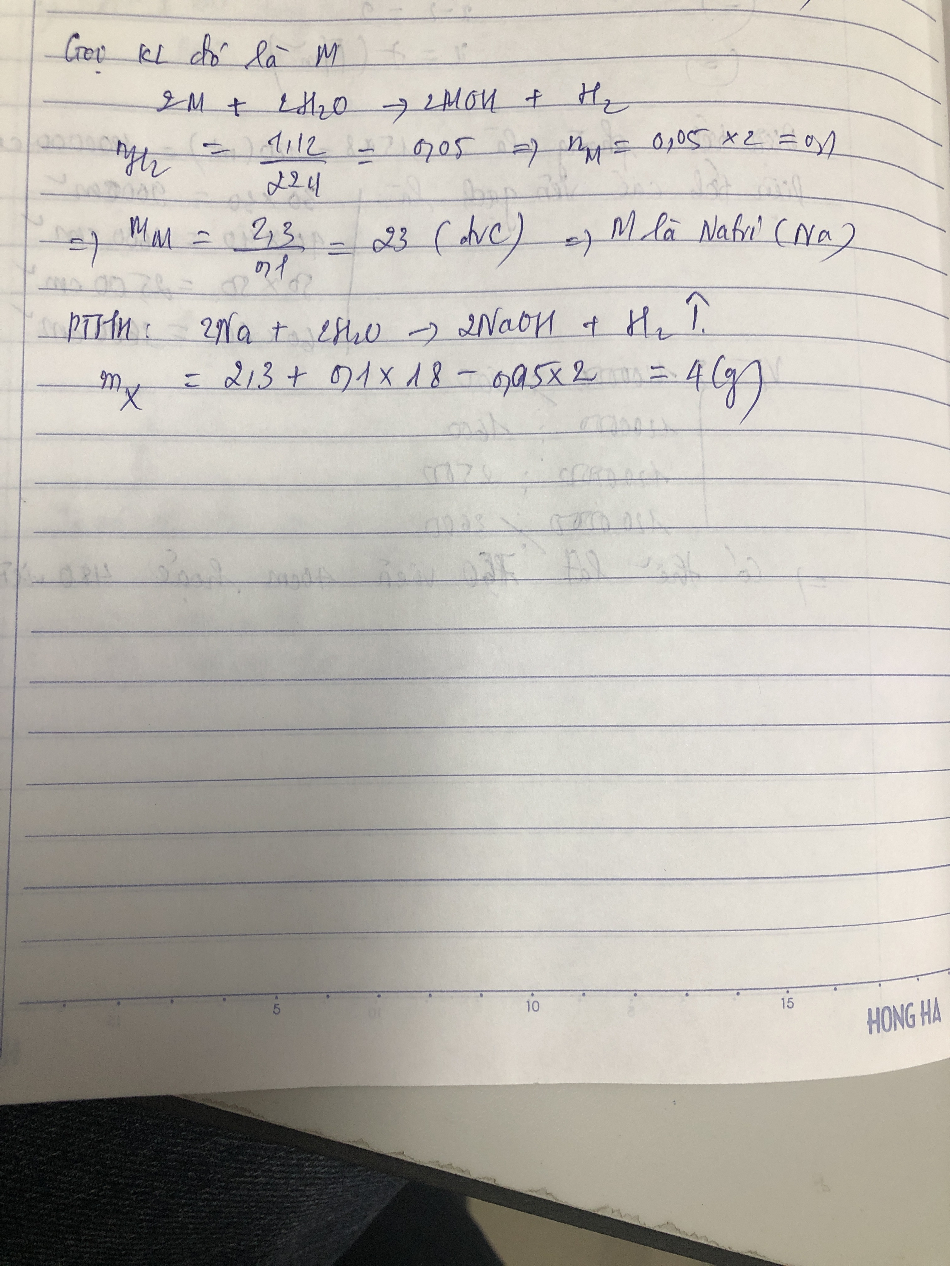 Cho 2,3 g một kim loại kiềm vào nước thì thư được 1,12 lít khí H2(đktc) và dung dịch X.