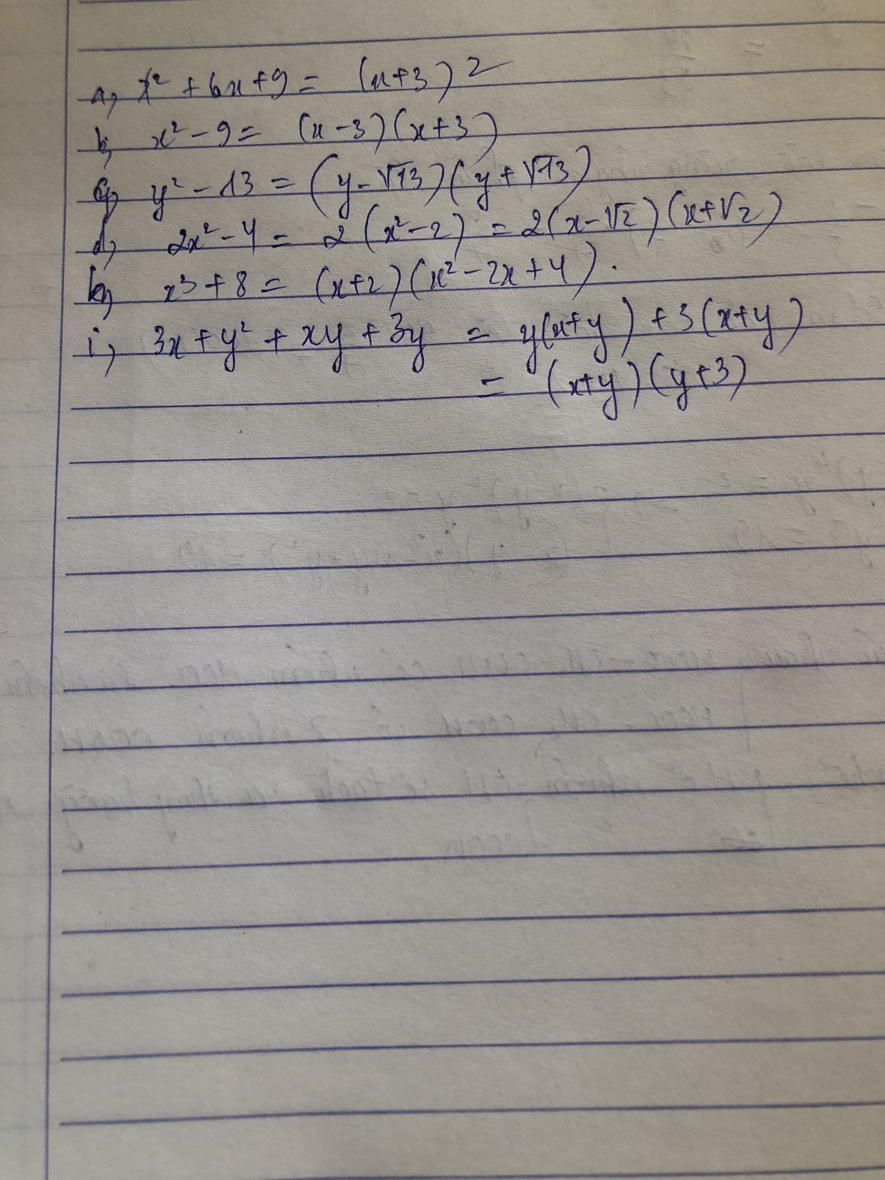 a. x2 + 6x + 9b. x2 - 9 c. y2 - 13 d. 2x2 - 4